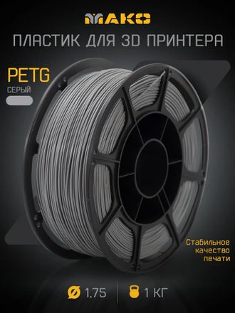 PETG серый 1.75 мм, 1.0 КГ, МАКО